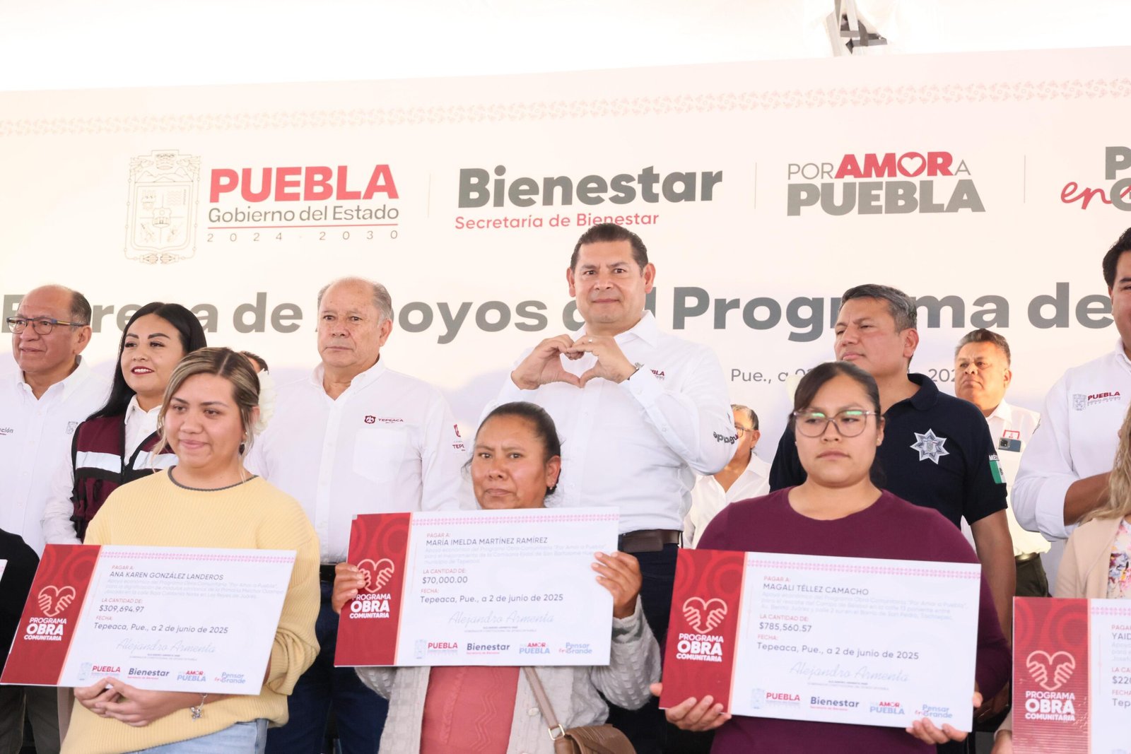 TEPEACA, Pue. — En un evento masivo con más de 4 mil asistentes, el gobernador de Puebla, Alejandro Armenta, entregó 26 cheques por un monto total de 7.1 millones de pesos destinados a proyectos comunitarios en 10 municipios. Esta inversión forma parte del Programa de Obra Comunitaria que busca mejorar las condiciones de vida en la región.