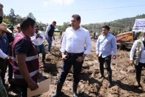 CHIGNAHUAPAN, Pue.- El gobernador Alejandro Armenta encabezó el recorrido por la comunidad de Ajolotla, severamente afectada por una tromba ocurrida el lunes pasado. Durante la visita, el mandatario estatal anunció la reposición de las 70 viviendas dañadas y el arranque inmediato de un programa de empleo temporal para apoyar a las familias damnificadas.
