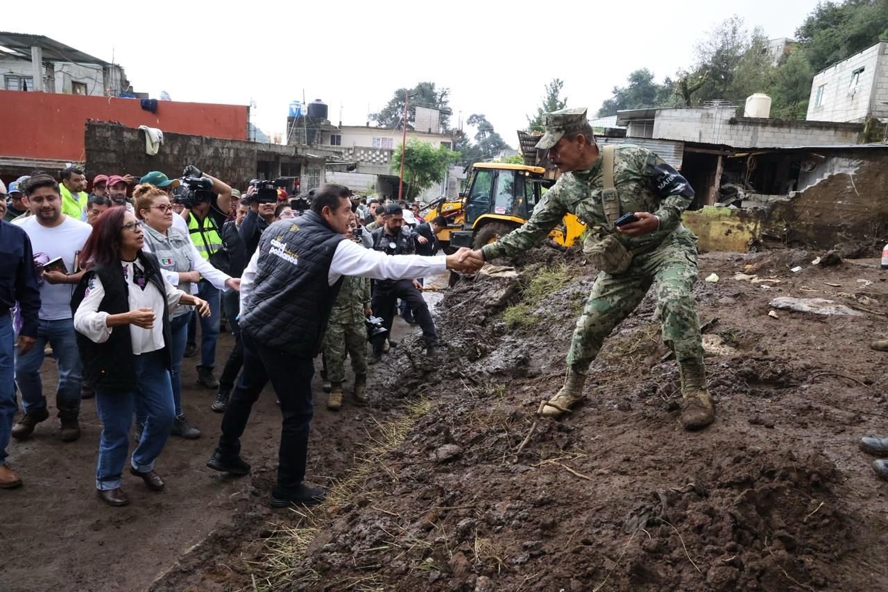 Acompañados por mandos de la Secretaría de la Defensa Nacional, la Marina, la Guardia Nacional y Protección Civil, constataron el esfuerzo conjunto para recuperar caminos, carreteras y viviendas dañadas. Durante la visita, el mandatario estatal atendió de manera directa las solicitudes de las familias afectadas y giró instrucciones para evaluar la construcción de un muro de contención en una zona en riesgo.