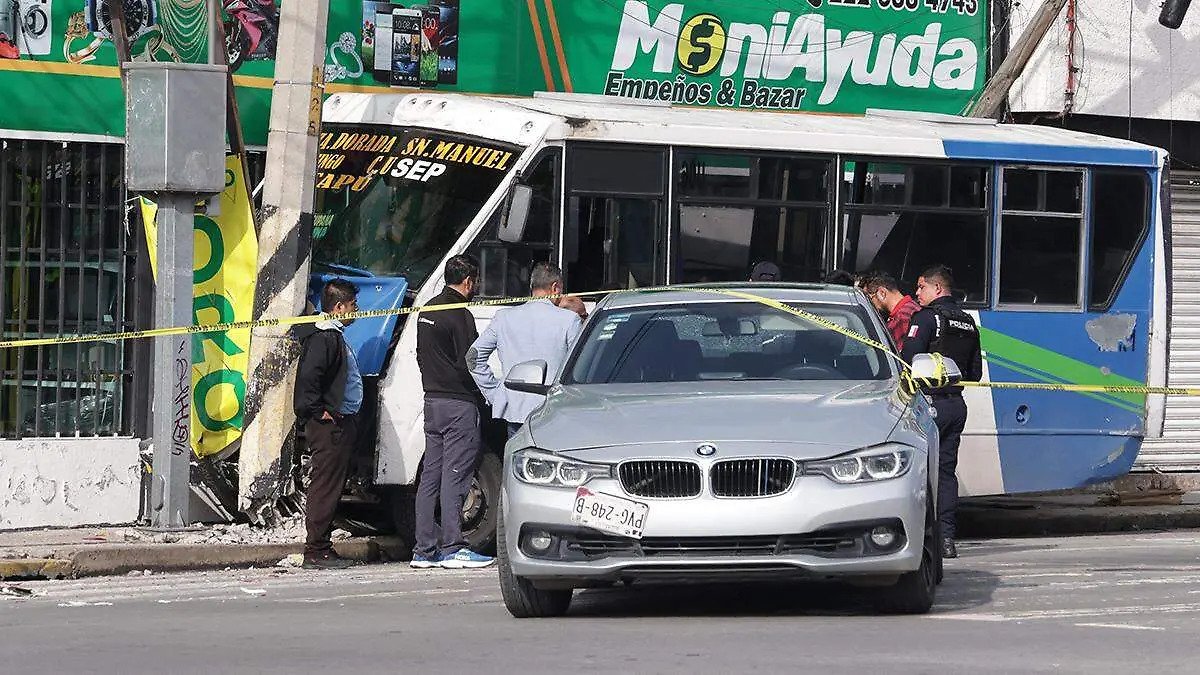 En la 31 Poniente, a la altura de la calle 7 Sur, una unidad de la Ruta Remanente 1 perdió el control tras quedarse sin frenos, atropellando a una mujer y chocando contra un automóvil y dos postes.