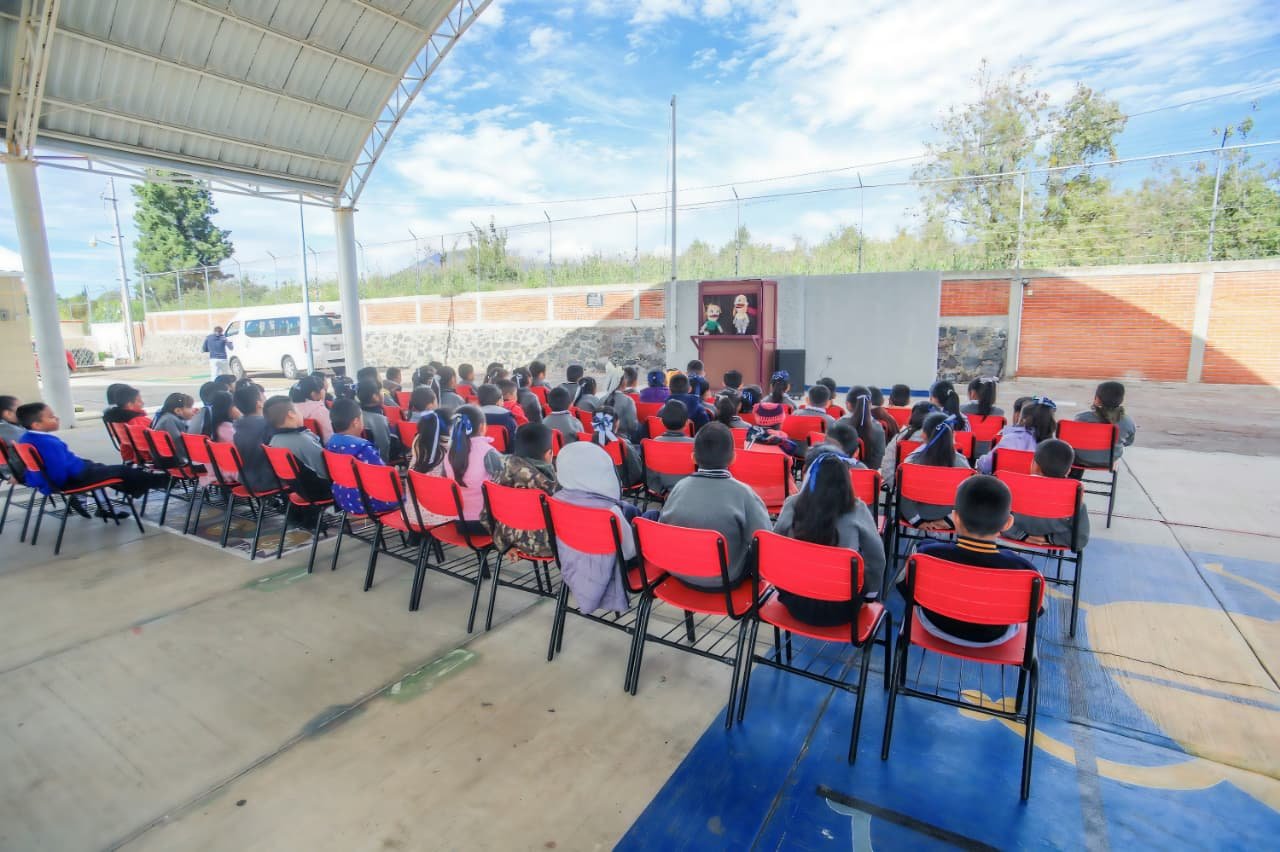 Entre las acciones destacan funciones de teatro guiñol, como “Vamos a Jugar”, que aborda la responsabilidad y el respeto; “Mi nombre es Tony”, centrada en la prevención del acoso escolar; y “Amistad en la Cancha”, que promueve la equidad de género. Además, se realizan pláticas preventivas para estudiantes de nivel medio superior y superior sobre adicciones y situaciones que ponen en riesgo su salud física y emocional.